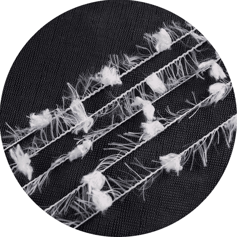 Sợi lông vũ được cấu tạo với lõi dọc và sợi ngang, trong đó sợi ngang được hình thành bằng cách cắt sợi ngang bằng một lưỡi dao. Quá trình này mang lại cho sợi kết cấu mềm mại, mịn màng đặc trưng, giống với hình dáng tự nhiên của lông vũ. Các sợi trang trí được thiết kế để duy trì độ bóng và độ đàn hồi tốt, giúp nâng cao hình thức tổng thể của thành phẩm dệt.